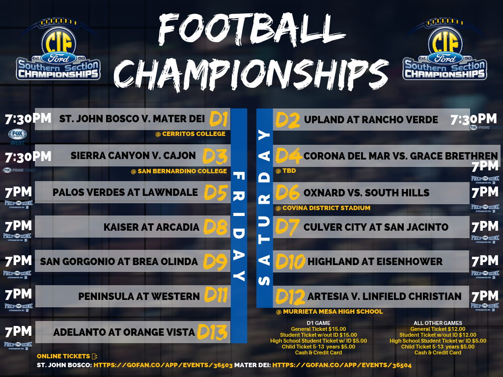 2018 Cif Ss Ford 11 Man Football Championships Schedule Cif Southern Section